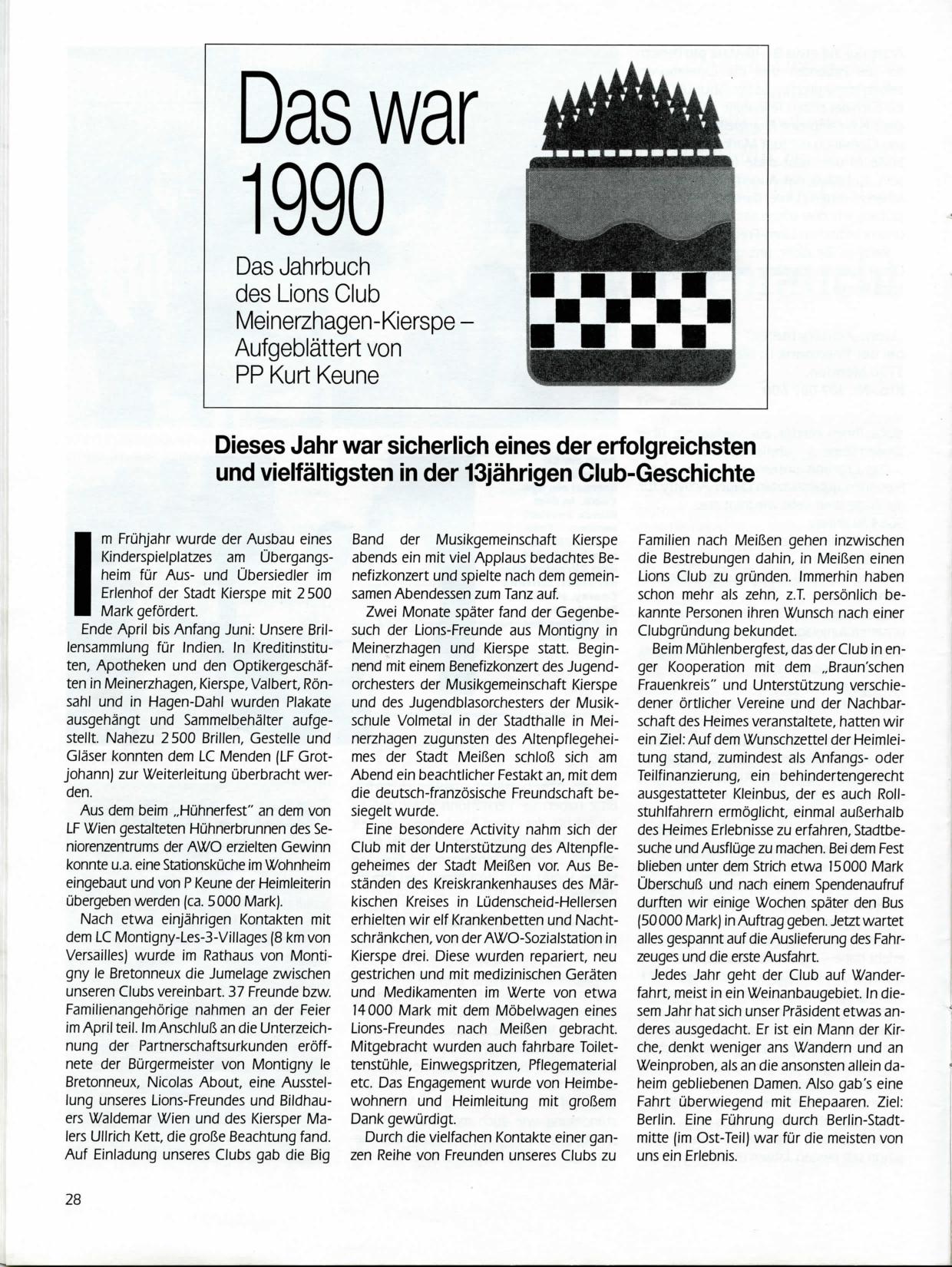 Das Jahrbuch des damaligen PP Kurt Keune, abgedruckt im Lion 01-1991, beschreibt unter dem Motto „Das war 1990“ ausführlich unsere umfangreichen Unternehmungen.