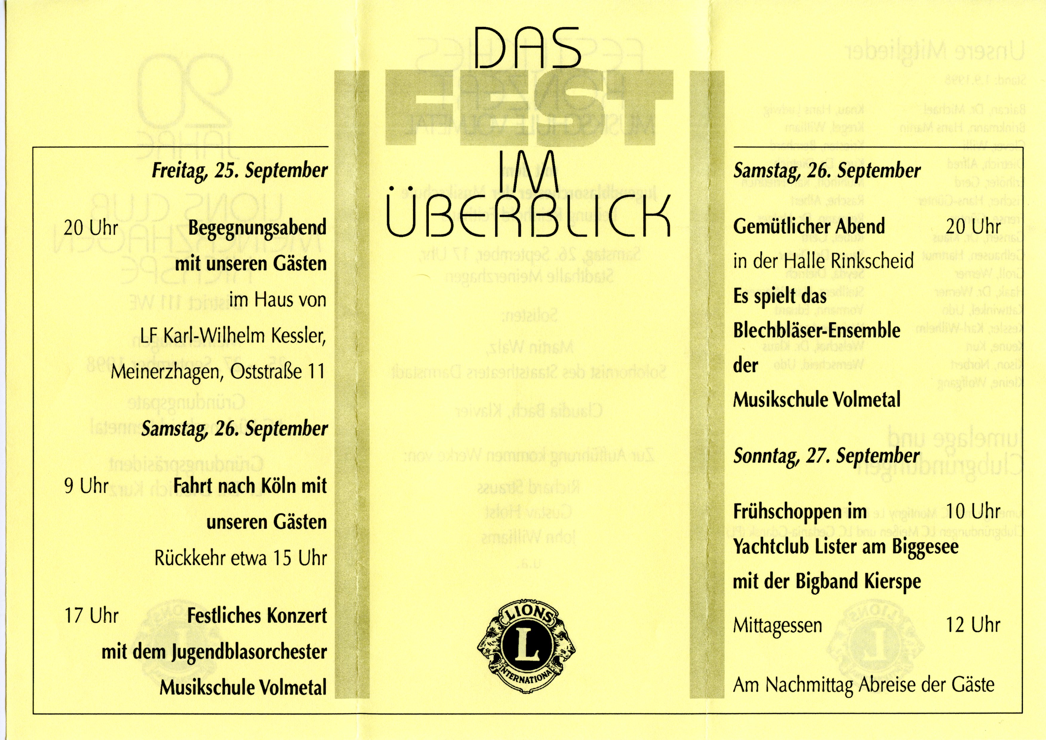 Ein ausführliches Drei-Tageprogramm vom 25. bis 27. September 1998 war vorbereitet und führte u.a. auch zu einer Besichtigungsfahrt in die nahegelegene Domstadt Köln.