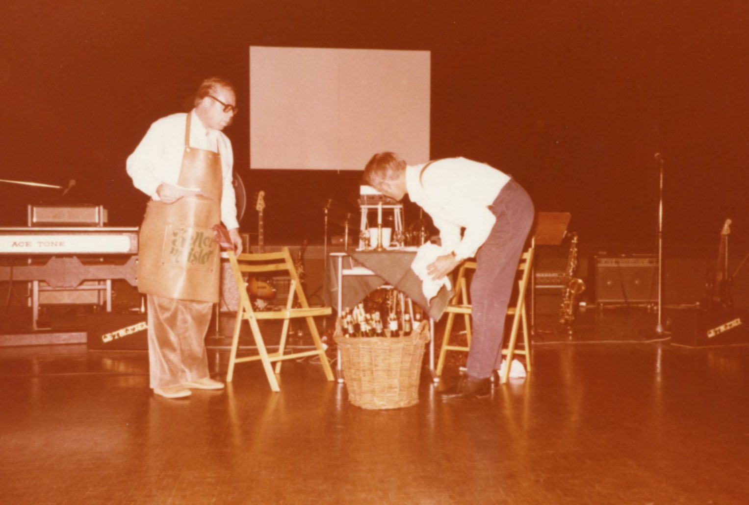 Mit einer Weinprobe – effektvoll dargestellt von den LF Addi und Willi – kommunizierten sie jeweils einen bestimmten Wein mit den Eigenschaften und Berufen des dazu auserkorenen Lionsfreundes.